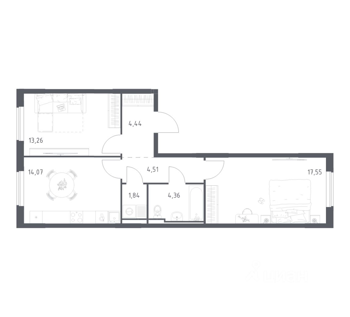 Квартиры комплекса — на выбор: могут быть как с отделкой, так и без. В случае с готовой отделкой уложат напольное покрытие, выровняют стены и поклеят обои в нейтральных тонах, установят потолки, выполнят разводку коммуникаций и подключат сантехнику. Вам также не придётся после заселения менять окна, межкомнатные и входные двери — их качество будет на высоте.
