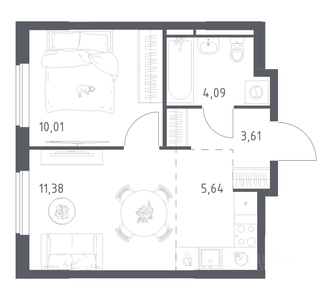 Строим кварталы для жизни с заботой о будущем. Предлагается 1-комнатная квартира комфорт-класса площадью 34,73 кв.м в корпусе 6 на 14-м этаже, в жилом комплексе "Мытищи Парк".