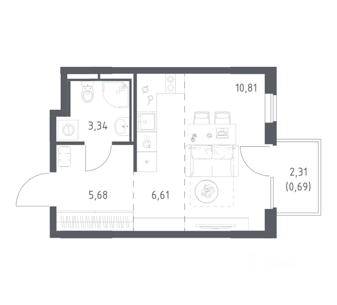 Строим кварталы для жизни с заботой о будущем. Предлагается студия комфорт-класса площадью 27,13 кв.м в корпусе 6 на 16-м этаже, в жилом комплексе "Мытищи Парк".