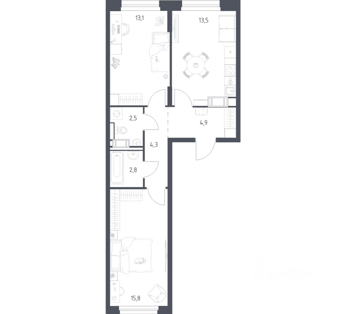 Строим кварталы для жизни с заботой о будущем. Предлагается 2-комнатная квартира комфорт-класса площадью 56,1 кв.м в корпусе 4.2 на 7-м этаже, в жилом комплексе "Мытищи Парк".