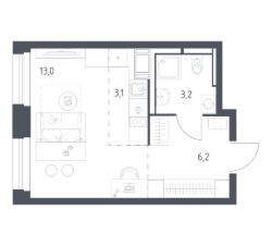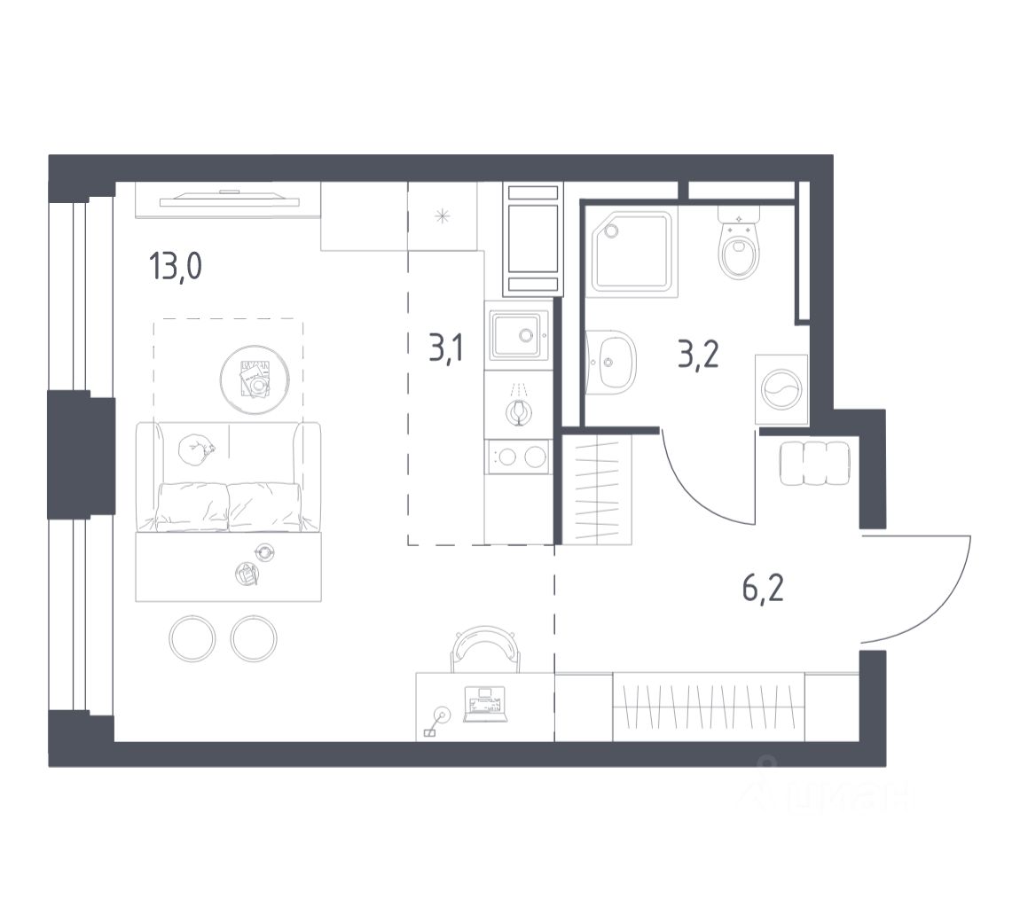Строим кварталы для жизни с заботой о будущем. Предлагается студия комфорт-класса площадью 25,2 кв.м в корпусе 4.2 на 5-м этаже, в жилом комплексе "Мытищи Парк".