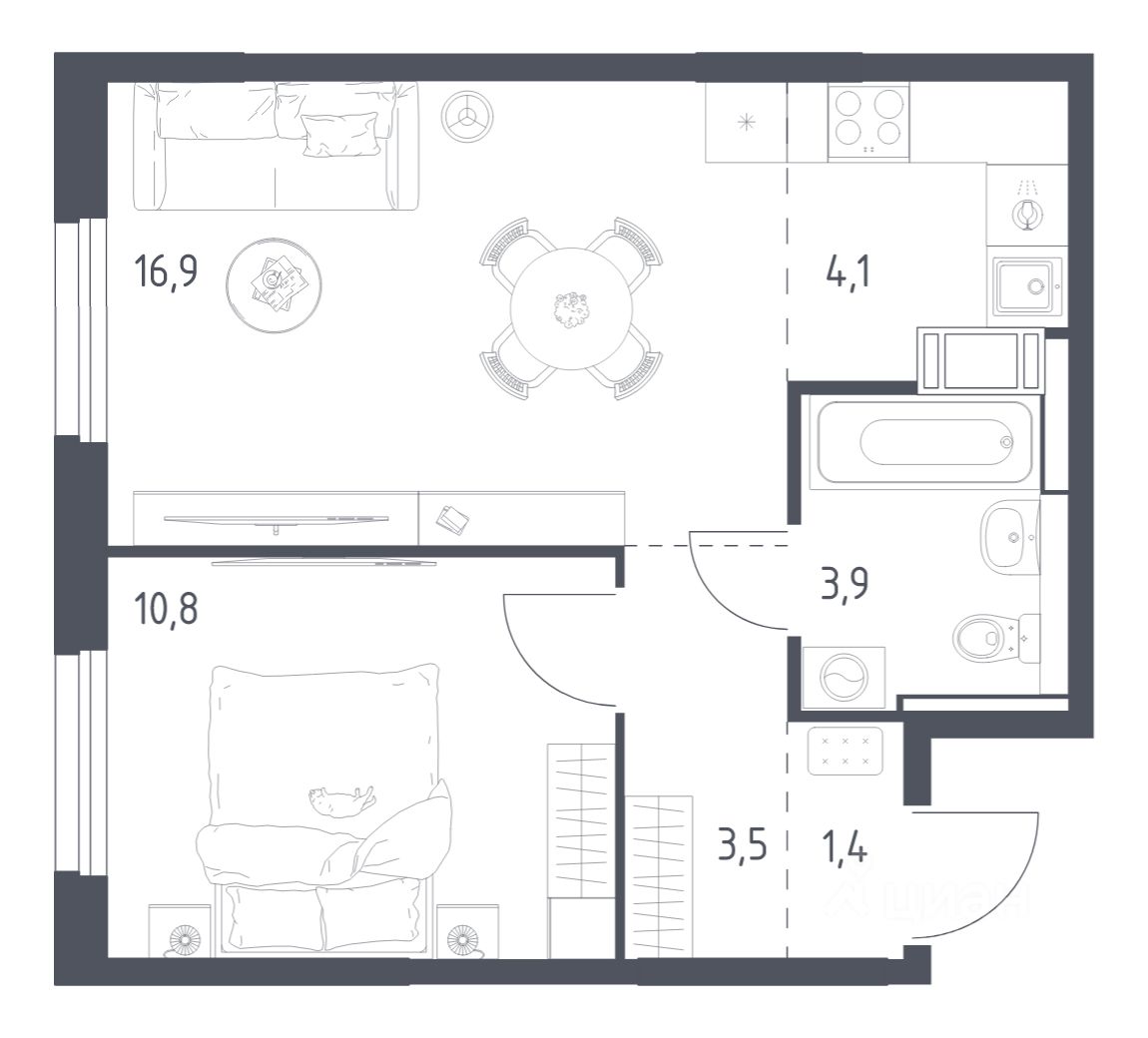 Строим кварталы для жизни с заботой о будущем. Предлагается 1-комнатная квартира комфорт-класса площадью 40,0 кв.м в корпусе 4.1 на 3-м этаже, в жилом комплексе "Мытищи Парк".