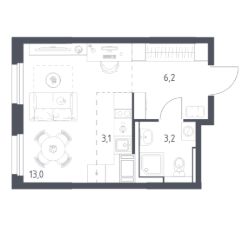 Строим кварталы для жизни с заботой о будущем. Предлагается студия комфорт-класса площадью 25,2 кв.м в корпусе 4.1 на 3-м этаже, в жилом комплексе "Мытищи Парк".