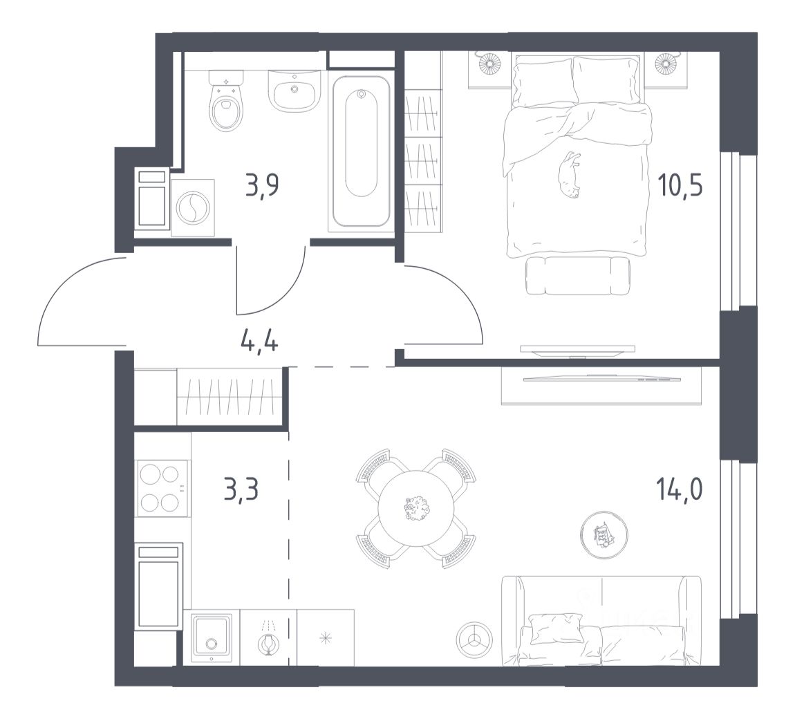 Квартиры комплекса — на выбор: могут быть как с отделкой, так и без. В случае с готовой отделкой уложат напольное покрытие, выровняют стены и поклеят обои в нейтральных тонах, установят потолки, выполнят разводку коммуникаций и подключат сантехнику. Вам также не придётся после заселения менять окна, межкомнатные и входные двери — их качество будет на высоте.