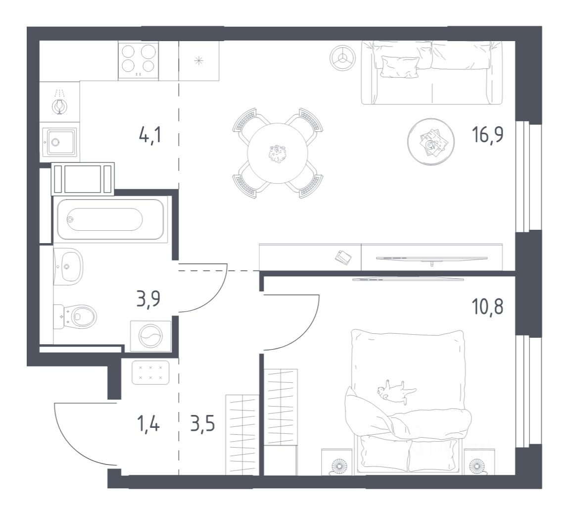 Строим кварталы для жизни с заботой о будущем. Предлагается 1-комнатная квартира комфорт-класса площадью 39,9 кв.м в корпусе 4.1 на 5-м этаже, в жилом комплексе "Мытищи Парк".
