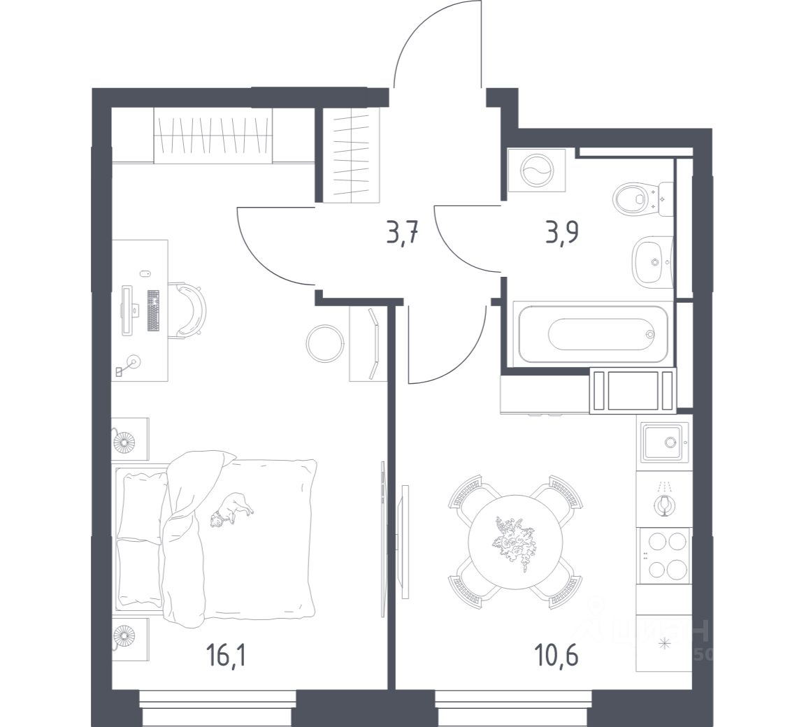 Строим кварталы для жизни с заботой о будущем. Предлагается 1-комнатная квартира комфорт-класса площадью 33,7 кв.м в корпусе 4.1 на 4-м этаже, в жилом комплексе "Мытищи Парк".
