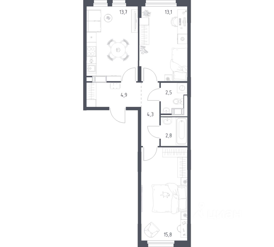 Квартиры комплекса — на выбор: могут быть как с отделкой, так и без. В случае с готовой отделкой уложат напольное покрытие, выровняют стены и поклеят обои в нейтральных тонах, установят потолки, выполнят разводку коммуникаций и подключат сантехнику. Вам также не придётся после заселения менять окна, межкомнатные и входные двери — их качество будет на высоте.