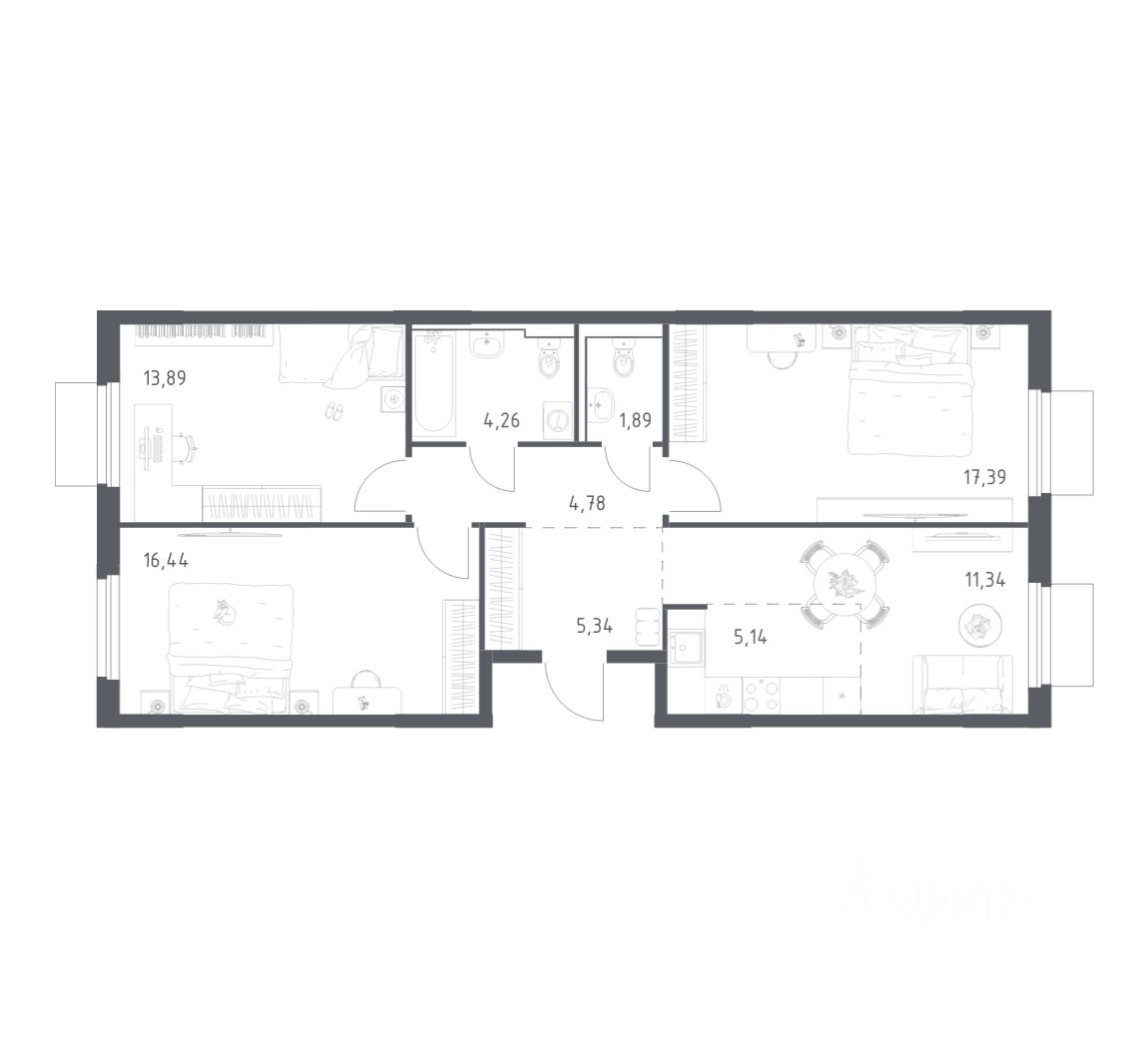 Строим кварталы для жизни с заботой о будущем. Предлагается 3-комнатная квартира комфорт-класса площадью 80,47 кв.м в корпусе 5 на 8-м этаже, в жилом комплексе "Мытищи Парк".