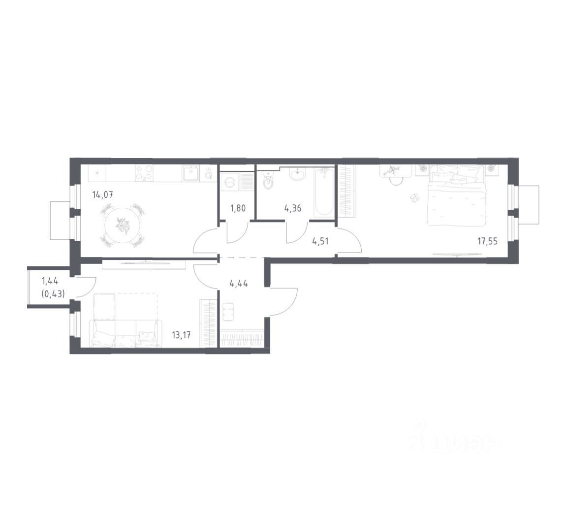 Квартиры комплекса — на выбор: могут быть как с отделкой, так и без. В случае с готовой отделкой уложат напольное покрытие, выровняют стены и поклеят обои в нейтральных тонах, установят потолки, выполнят разводку коммуникаций и подключат сантехнику. Вам также не придётся после заселения менять окна, межкомнатные и входные двери — их качество будет на высоте.