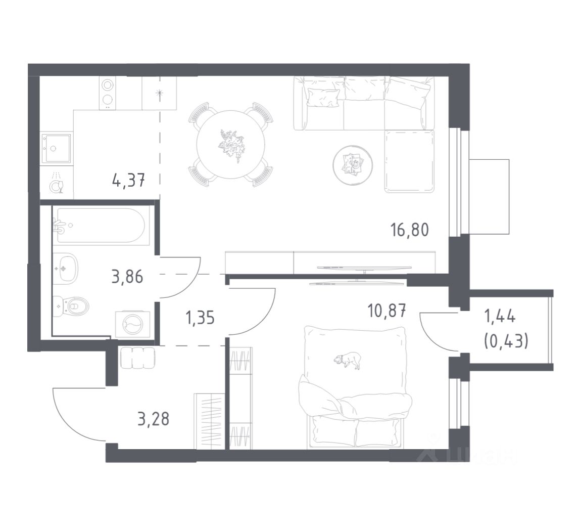 Строим кварталы для жизни с заботой о будущем. Предлагается 1-комнатная квартира комфорт-класса площадью 40,96 кв.м в корпусе 5 на 9-м этаже, в жилом комплексе "Мытищи Парк".