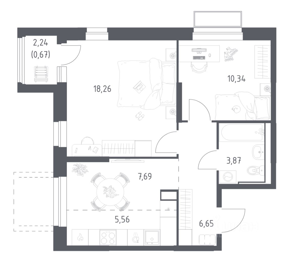 Квартиры комплекса — на выбор: могут быть как с отделкой, так и без. В случае с готовой отделкой в комнатах и прихожей уже будут обои, натяжные потолки и ламинат, а в санузлах — керамогранит на полу и керамическая плитка на стенах. Мы подведем все коммуникации и установим сантехнику.