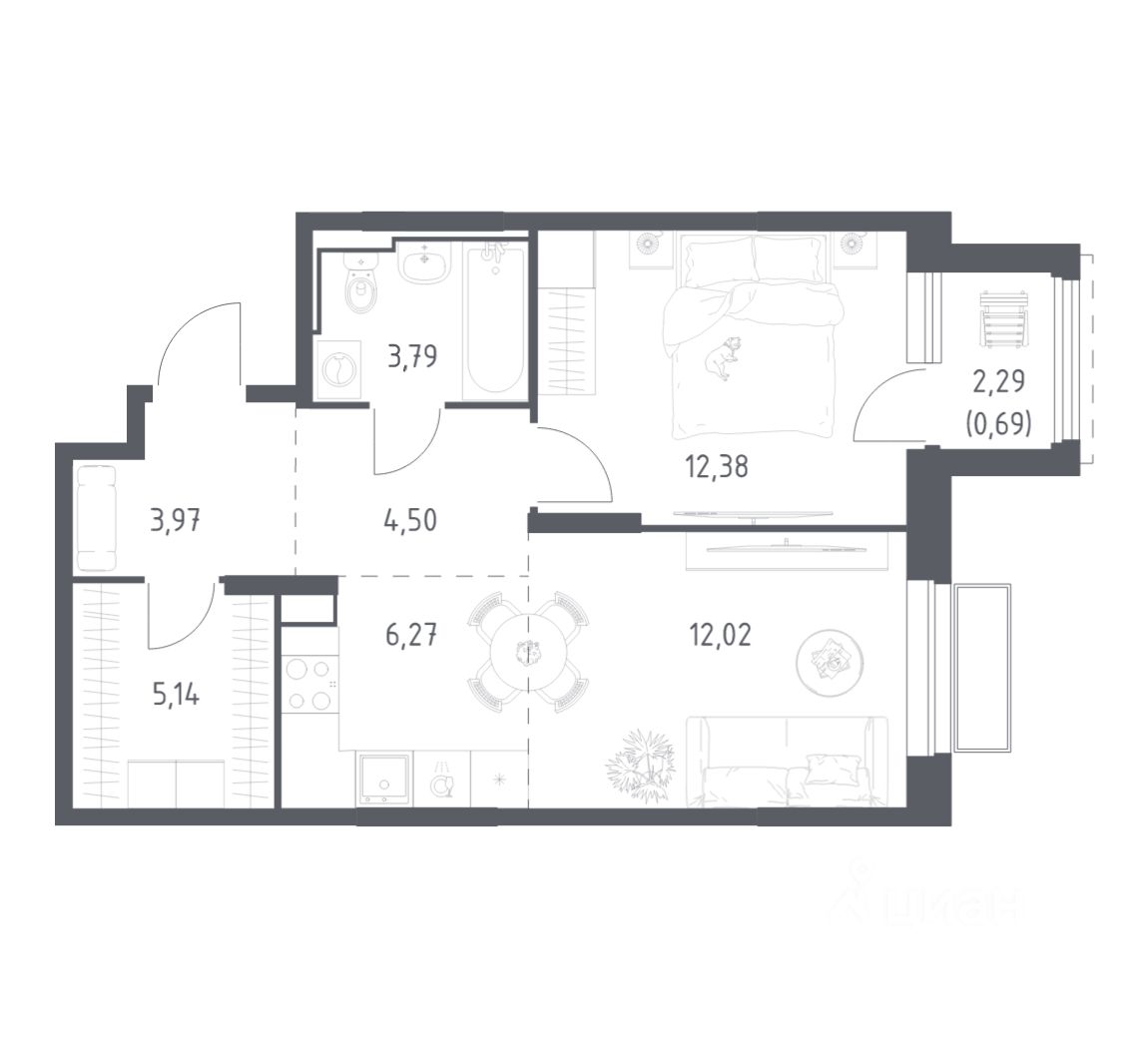 Строим кварталы для жизни с заботой о будущем. Предлагается 1-комнатная квартира комфорт-класса площадью 48,76 кв.м в корпусе 3 на 7-м этаже, в жилом комплексе "Долина Яузы".