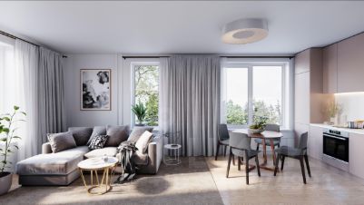 Квартиры комплекса — на выбор: могут быть как с отделкой, так и без. В случае с готовой отделкой в комнатах и прихожей уже будут обои, натяжные потолки и ламинат, а в санузлах — керамогранит на полу и керамическая плитка на стенах. Мы подведем все коммуникации и установим сантехнику.