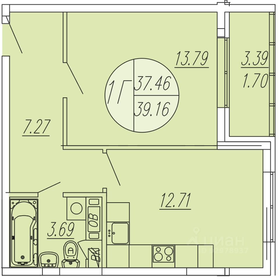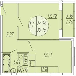 Общая площадь39,16 м²