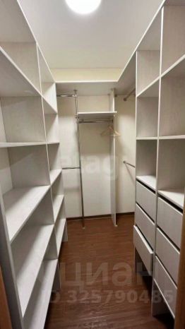 Полноценная гардеробная с системой хранения — избавит от лишних шкафов.
