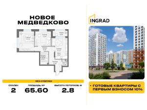 Прямая продажа от девелопера. В жилом квартале, расположенном в северо-западной части города Мытищи, продаётся 2-спальная квартира площадью 65.60 кв.м без отделки. Квартира расположена на 14 этаже 18-этажного дома, корпус 42, в жилом квартале комфорт-класса "Новое Медведково" (девелопер Ingrad).