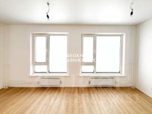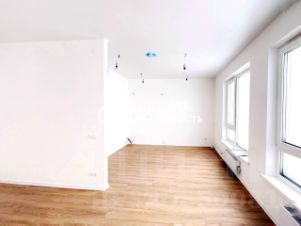 — Комната (12,4м²) с двумя большими окнами, совмещает в себе будущую зону отдыха и зону кухни
