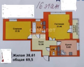 Дом монолитно-кирпичный 2005 года постройки, квартира распашная, комнаты 22 м и 17 м, правильной формы с большими окнами, кухня 10 м, просторный холл, 1 совмещенный с/узел, гардеробная и большая лоджия.