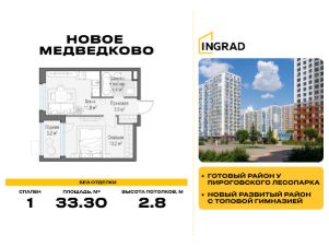 Прямая продажа от застройщика. В жилом квартале, расположенном в северо-западной части города Мытищи, продаётся 1-спальная квартира площадью 33.30 кв.м без отделки. Квартира расположена на 14 этаже 17-этажного дома, корпус 39, в жилом квартале комфорт-класса Новое Медведково (застройщик ГК Инград).