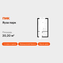 Продаётся квартира-студия площадью 20,2 кв.м на 4 этаже 24 этажного дома (Корпус 5, Секция 1) проекта ПИК Яуза парк. Светлый просторный подъезд на уровне земли, функциональная планировка, большие окна, c отделкой.