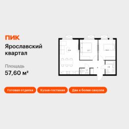 Продаётся 2-комн. квартира площадью 57,6 кв.м на 11 этаже 25 этажного дома (Корпус 1.4, Секция 1) проекта ПИК Ярославский квартал. Светлый просторный подъезд на уровне земли, функциональная планировка, большие окна, c отделкой.