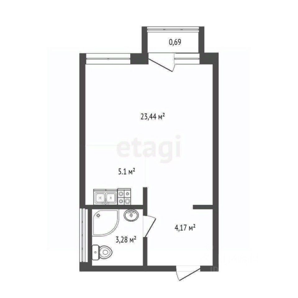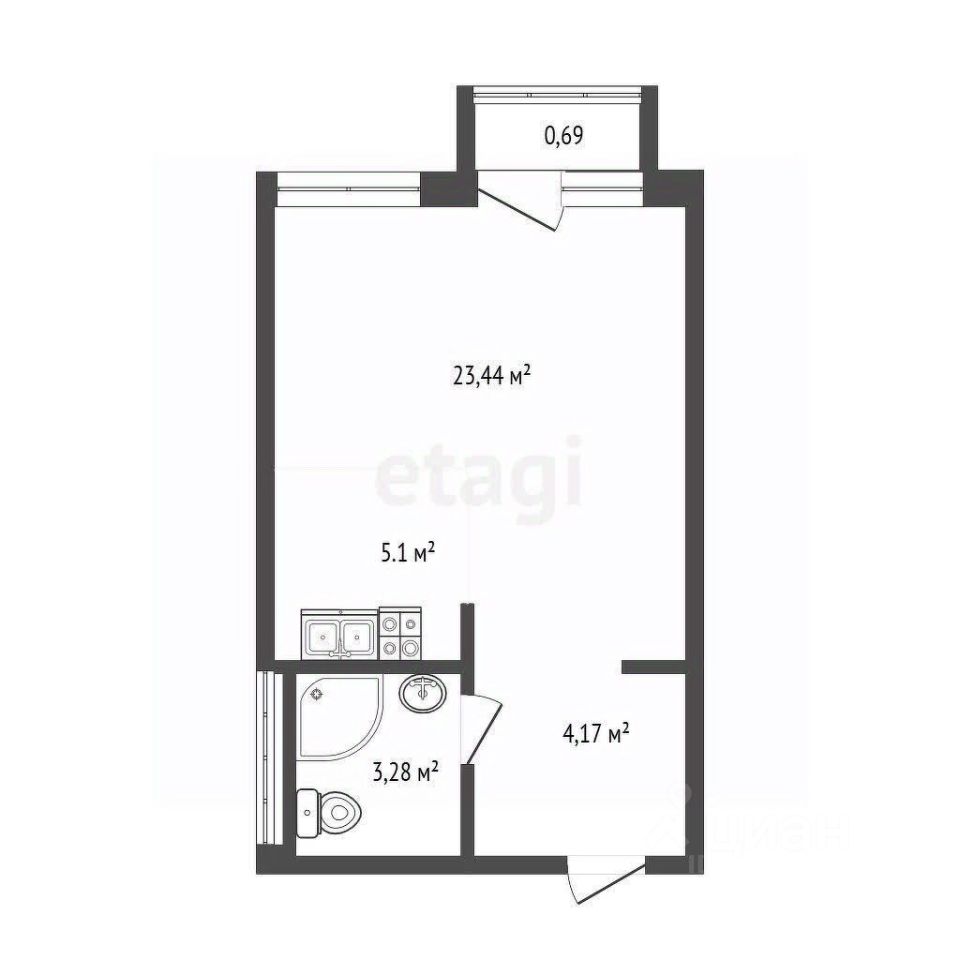 23,44 - общая площадь с учетом балкона по ЕГРН