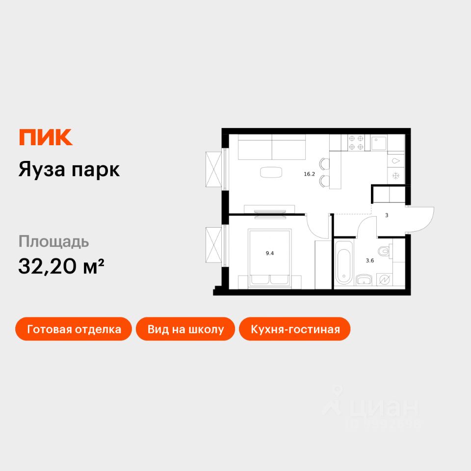 Продаётся 1-комн. квартира площадью 32,2 кв.м на 17 этаже 24 этажного дома (Корпус 6, Секция 1) проекта ПИК Яуза парк. Светлый просторный подъезд на уровне земли, функциональная планировка, большие окна, c отделкой.