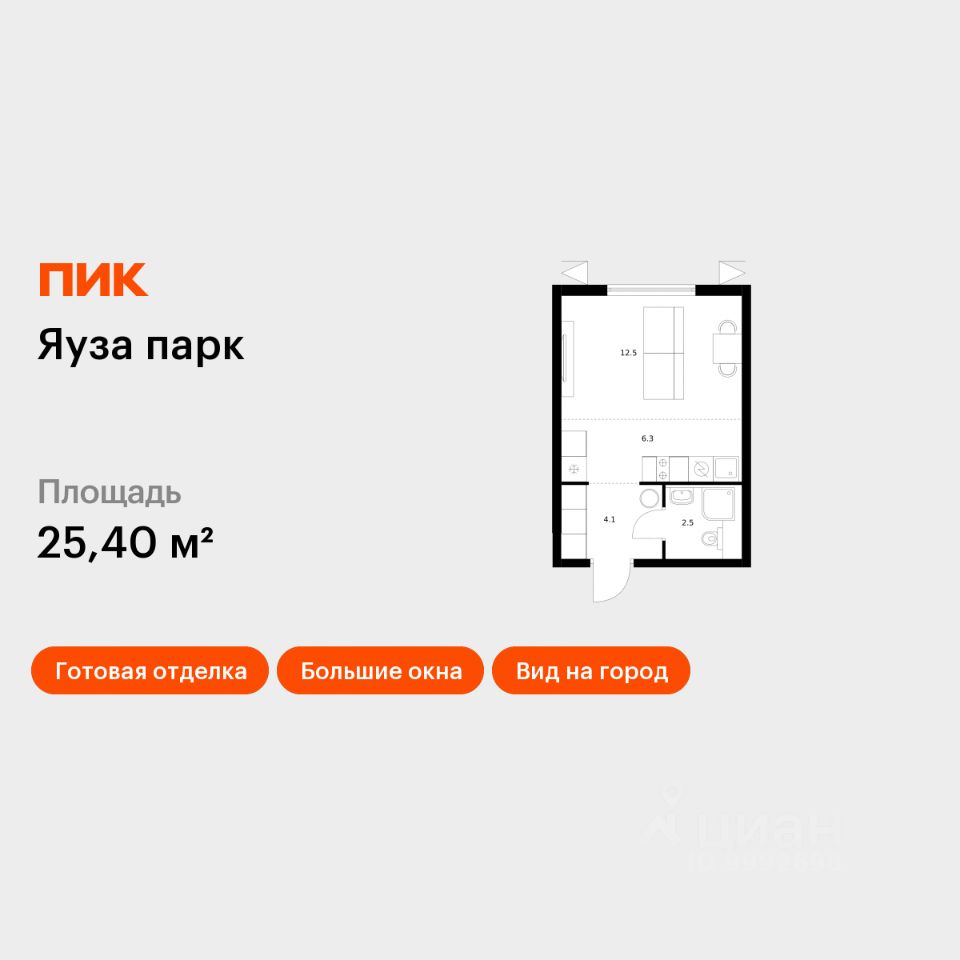 Продаётся квартира-студия площадью 25,4 кв.м на 22 этаже 24 этажного дома (Корпус 6, Секция 1) проекта ПИК Яуза парк. Светлый просторный подъезд на уровне земли, функциональная планировка, большие окна, c отделкой.