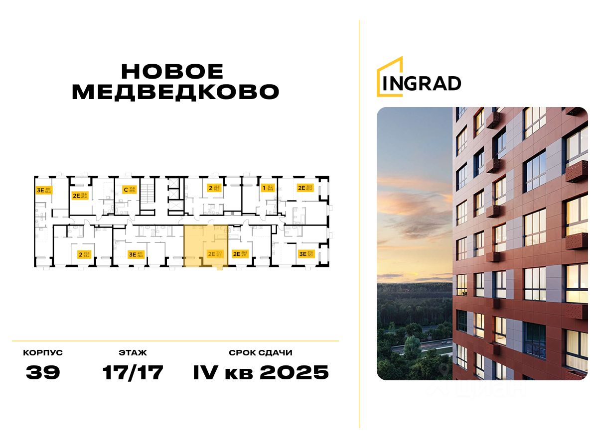 Прямая продажа от девелопера. В жилом квартале, расположенном в северо-западной части города Мытищи, продаётся 1-спальная квартира площадью 45.80 кв.м без отделки. Квартира расположена на 17 этаже 17-этажного дома, корпус 39, в жилом квартале комфорт-класса "Новое Медведково" (девелопер Ingrad).