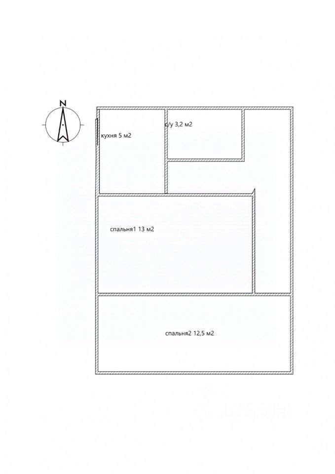 Структура комнат: 2 комнаты (изолированные), размеры 18 и 14 м²