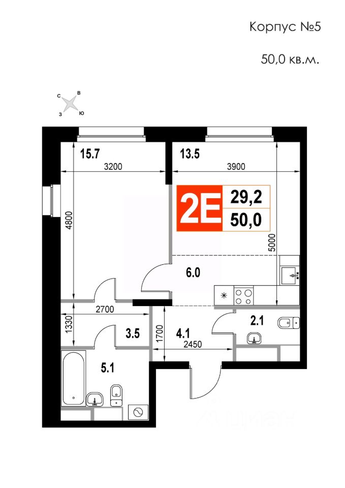 Продаётся 2-комнатная квартира в строящемся доме (Корпус 5), срок сдачи: II-кв. 2026, общей площадью 50 кв.м., на 7 этаже. Многоквартирный жилой дом со встроенно-пристроенными нежилыми помещениями и автостоянкой