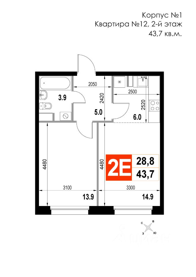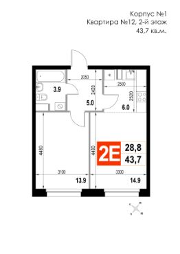 Продаётся 2-комнатная квартира в строящемся доме (Корпус 1), срок сдачи: IV-кв. 2025, общей площадью 43.7 кв.м., на 2 этаже. Многоквартирный жилой дом со встроенно-пристроенными нежилыми помещениями и автостоянкой