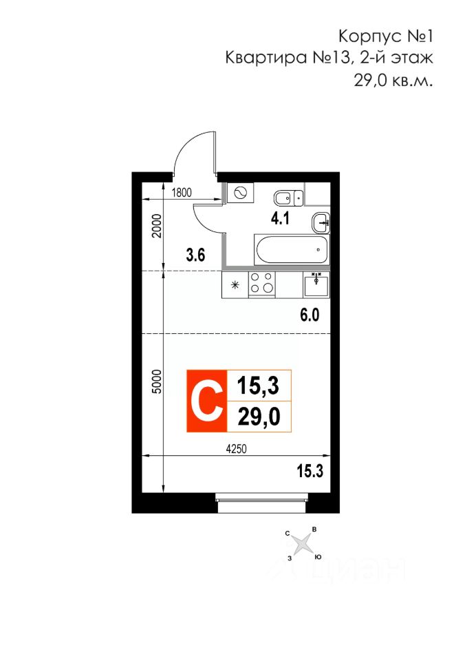 Продаётся студия в строящемся доме (Корпус 1), срок сдачи: IV-кв. 2025, общей площадью 29 кв.м., на 2 этаже. Многоквартирный жилой дом со встроенно-пристроенными нежилыми помещениями и автостоянкой