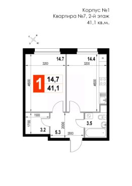 1-комн. квартира, 41,1 м²