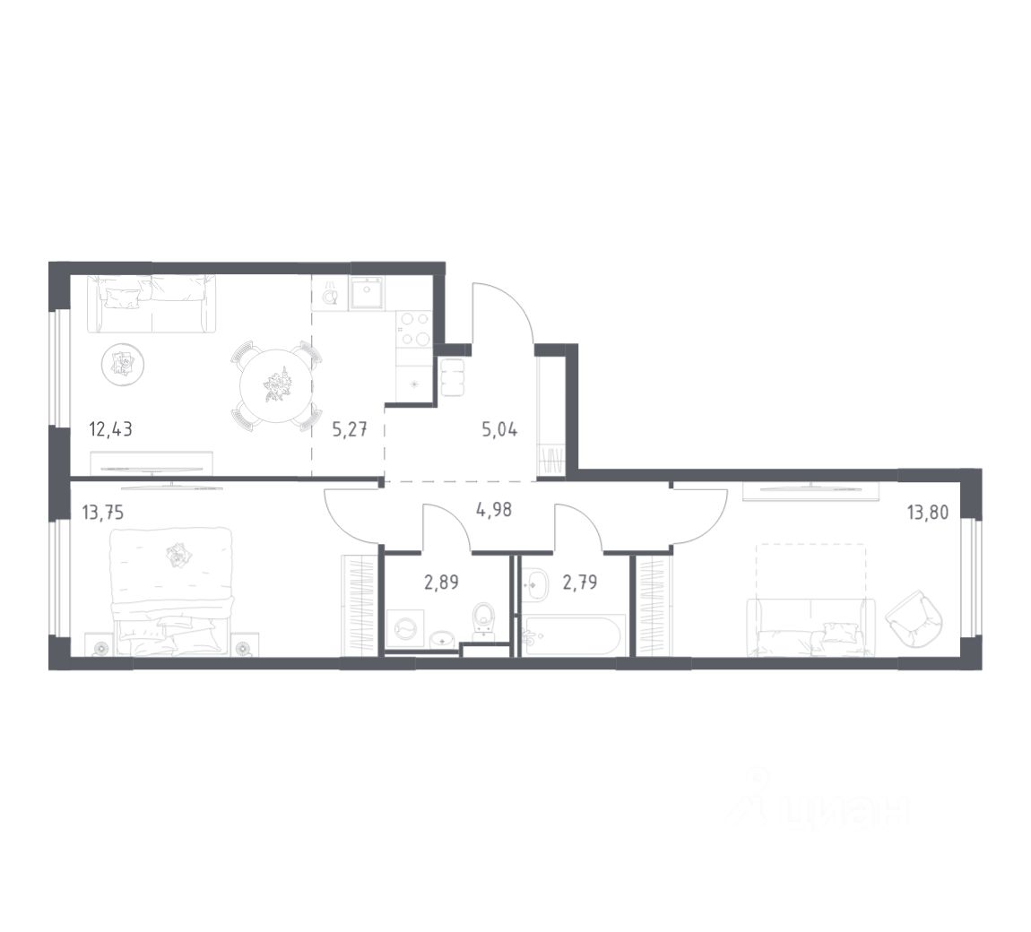 Квартиры комплекса — на выбор: могут быть как с отделкой, так и без. В случае с готовой отделкой уложат напольное покрытие, выровняют стены и поклеят обои в нейтральных тонах, установят потолки, выполнят разводку коммуникаций и подключат сантехнику. Вам также не придётся после заселения менять окна, межкомнатные и входные двери — их качество будет на высоте.