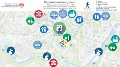 Единственное в городе расположение дома непосредственно в Парке у набережной реки Яуза. Точечная застройка в старом обжитом, историческом месте. 40 минут до центра Москвы (метро проспект Мира) в час пик.