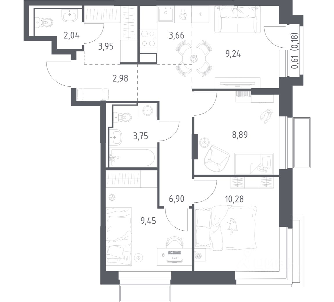 Строим кварталы для жизни с заботой о будущем. Предлагается 3-комнатная квартира комфорт-класса площадью 61,32 кв.м в корпусе 3 на 20-м этаже, в жилом комплексе "Долина Яузы".