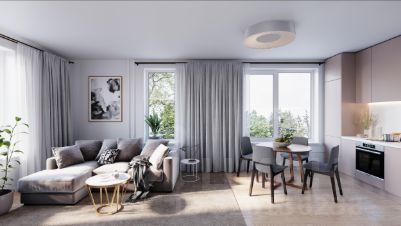 Квартиры комплекса — на выбор: могут быть как с отделкой, так и без. В случае с готовой отделкой в комнатах и прихожей уже будут обои, натяжные потолки и ламинат, а в санузлах — керамогранит на полу и керамическая плитка на стенах. Мы подведем все коммуникации и установим сантехнику.