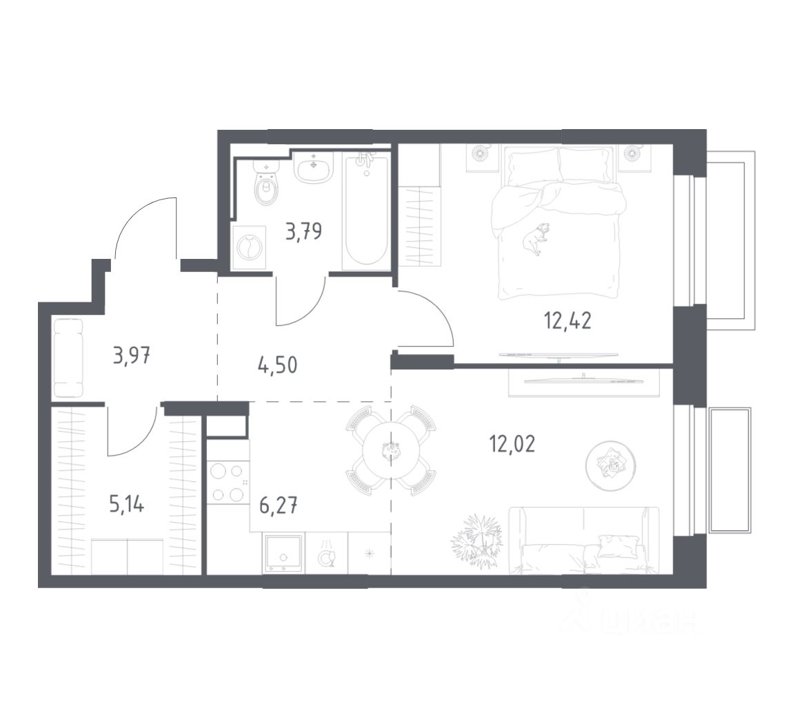 Строим кварталы для жизни с заботой о будущем. Предлагается 1-комнатная квартира комфорт-класса площадью 48,11 кв.м в корпусе 3 на 21-м этаже, в жилом комплексе "Долина Яузы".