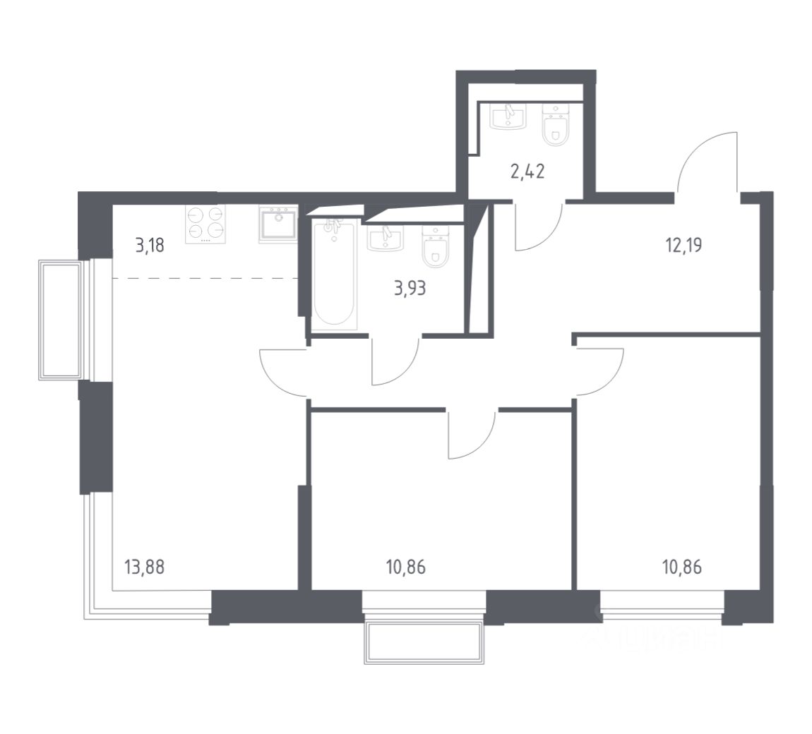 Квартиры комплекса — на выбор: могут быть как с отделкой, так и без. В случае с готовой отделкой в комнатах и прихожей уже будут обои, натяжные потолки и ламинат, а в санузлах — керамогранит на полу и керамическая плитка на стенах. Мы подведем все коммуникации и установим сантехнику.