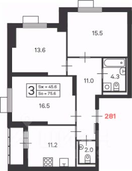 3-комн. кв., 75,6 кв.м