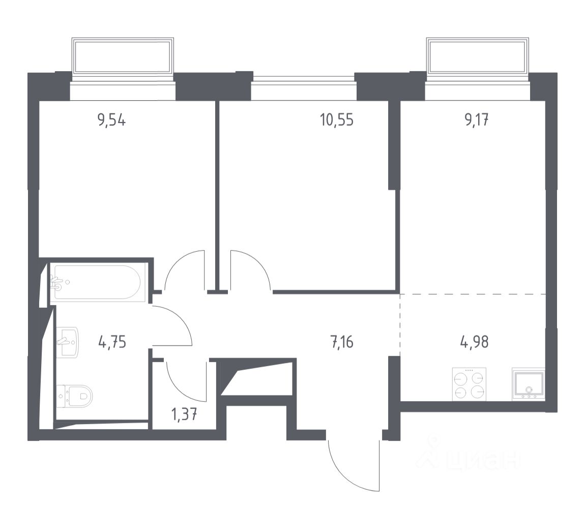 Квартиры комплекса — на выбор: могут быть как с отделкой, так и без. В случае с готовой отделкой в комнатах и прихожей уже будут обои, натяжные потолки и ламинат, а в санузлах — керамогранит на полу и керамическая плитка на стенах. Мы подведем все коммуникации и установим сантехнику.
