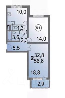 56,8 м²