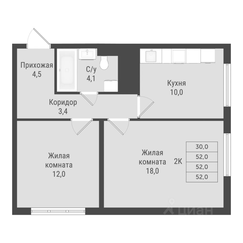Общая площадь52 м²