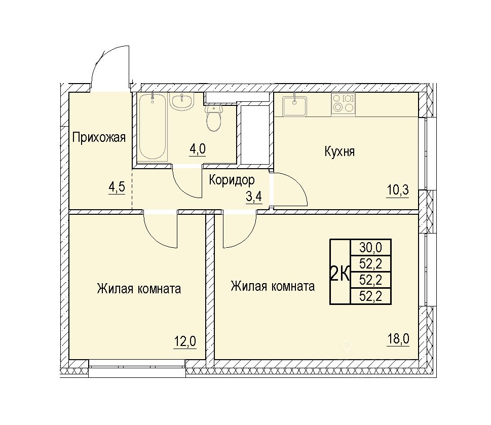 Общая площадь52,2 м²