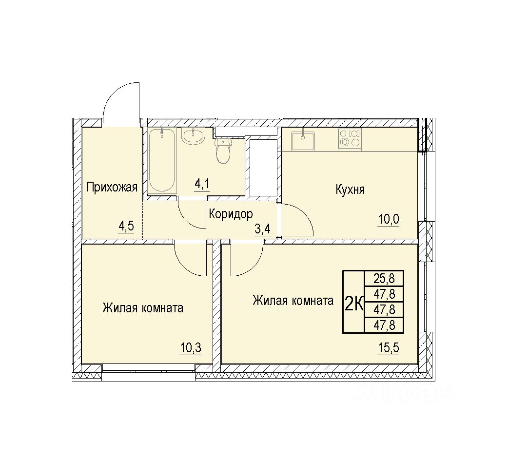 Общая площадь47,8 м²