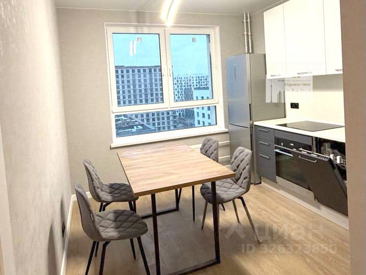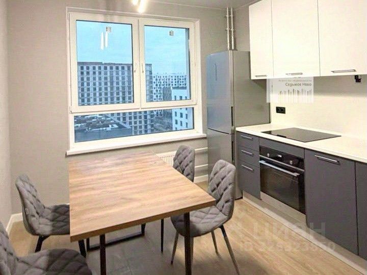 В квартире сделан качественный ремонт. Кухня укомплектована современной техникой - холодильник, духовой шкаф, варочная панель, посудомоечная машина. Стены - обои под покраску. На полу ламинат. В комнате установлен кондиционер. Санузел совмещенный.