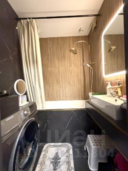 Труба - бесшовный металлополимер (отдельный вывод сливного шланга стиральной машины к канализации), гидроизоляция, душевая система с тропическим душем, лейкой и смесителем, нажимной механизм (кнопка-автомат) в системе слива-перелива, сама ванна с бортом из керамогранита, накладной умывальник с отдельным смесителем, принудительная вытяжка, на потолке накладные светильники, большое сенсорное зеркало с тремя режимами, дополнительные розетки, ревизионный люк с нажимным механизмом. Демонтирован полотенцесушитель от застройщика, установлен электрический.