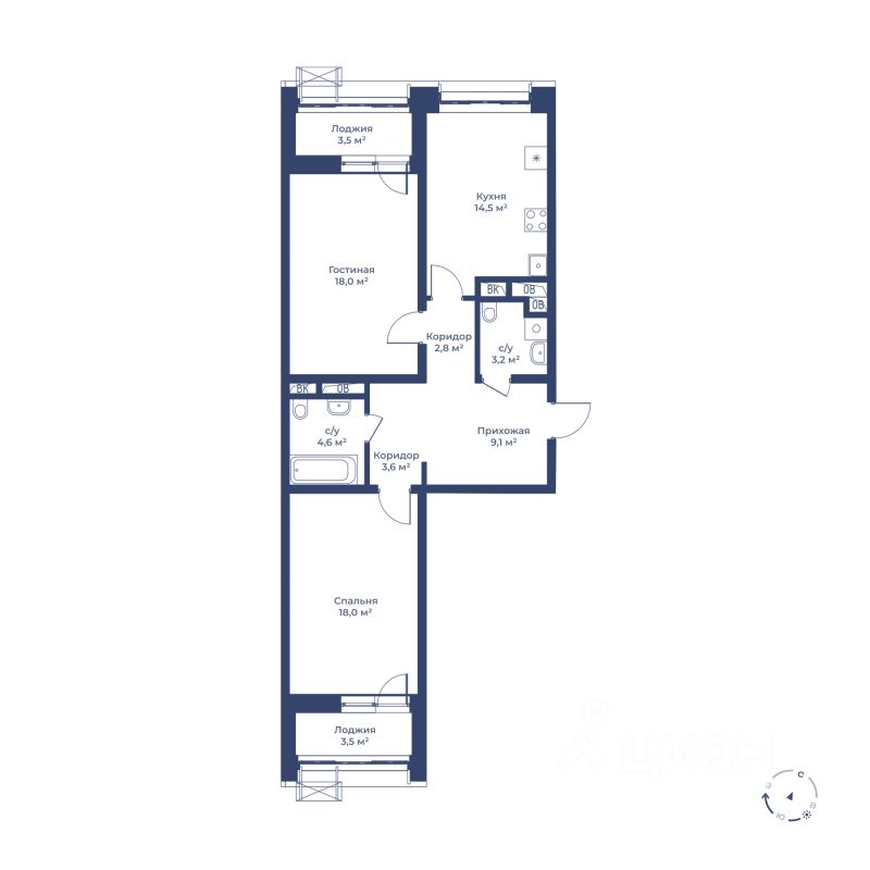 Продаётся 2-комнатная квартира в строящемся доме (Корпус 12), срок сдачи: II-кв. 2027, общей площадью 77.4 кв.м., на 11 этаже. Комплекс возводится в центральной части города Мытищи Московской области, микрорайон 22, на Октябрьском проспекте. До объекта можно добраться на личном автотранспорте по Ярославскому шоссе 3 км от МКАД. Автобусом и маршрутным такси от метро "Бабушкинская", общее время в пути составит 20 мин. В 5 минутах ходьбы находится ж/д станция "Тайнинская", минут за 15 можно дойти до ж/д станции "Перловская", откуда можно добраться до метро "Комсомольская" за 20 мин. на экспресс-электричке.