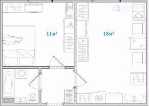 Площадь комнат: 18+11 кв.м